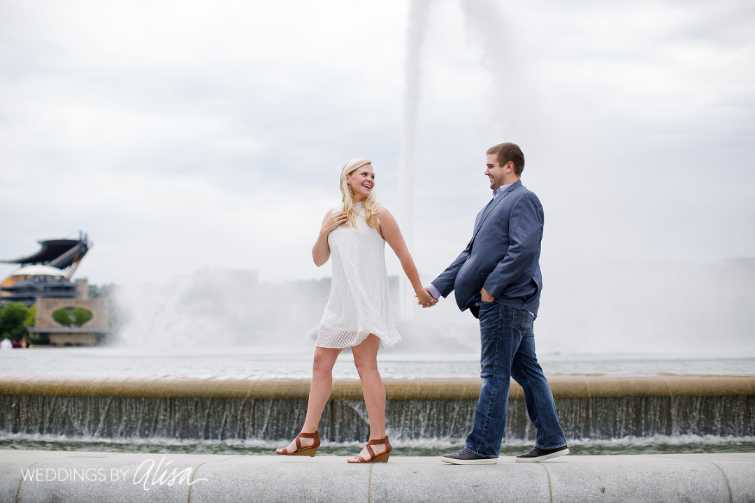 Doing their engagement session at Duquesne University was super-important to Emily and Brent, as they are both alumni! Our first stop however, was the Point State Park Fountain for some dressy engagement photos….
