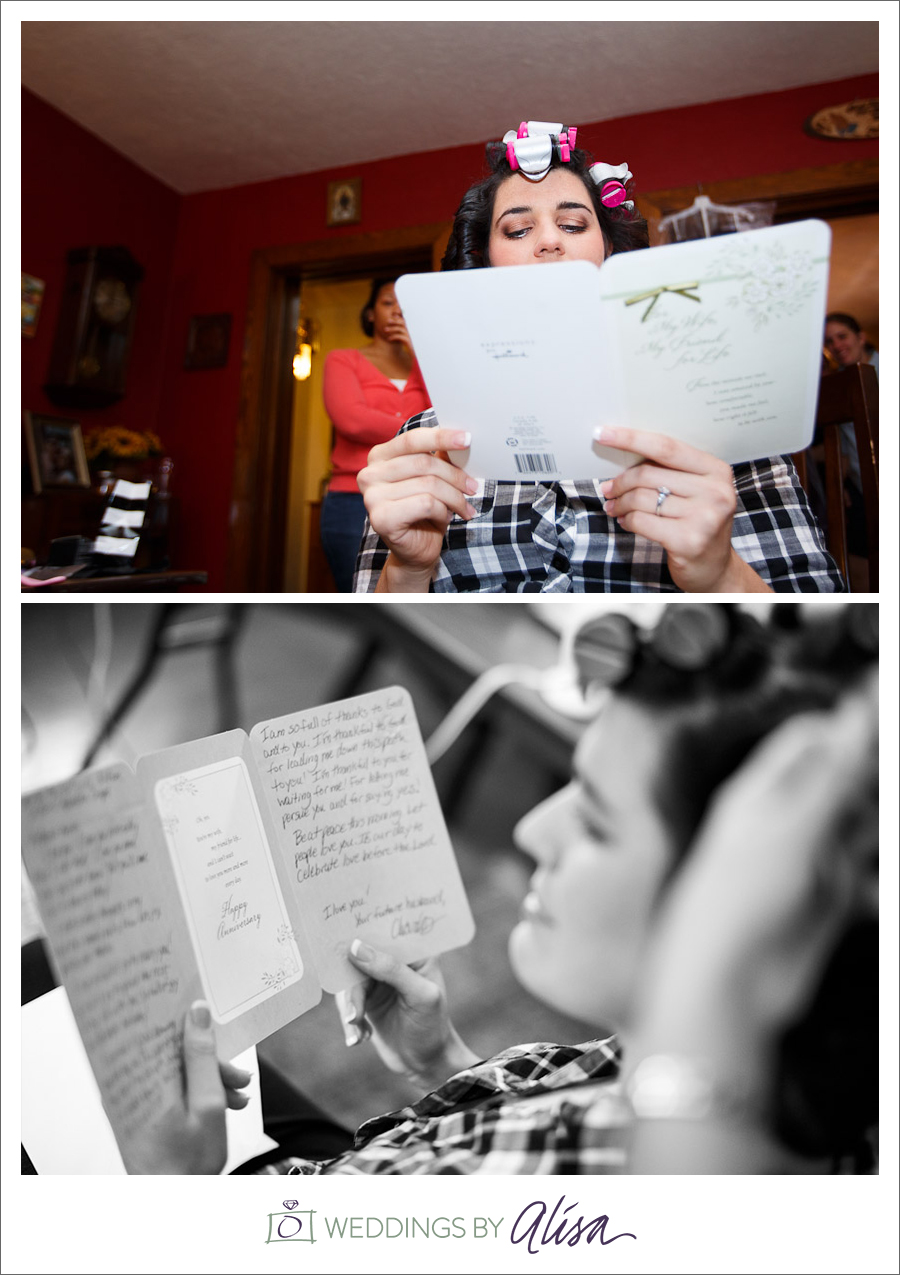 We have been anxiously awaiting Sam and Patrick’s wedding day.  I’ve been following her boards on Pinterest and have been so inspired by her creativity!!!  I knew her wedding was going to be beautiful, and it definitely was!  I love it when I arrive at the bride’s house and as soon as I walk in the door, I feel like a member of the family.  Sam and Patrick’s family welcomed me with open arms and I felt so loved!!!!